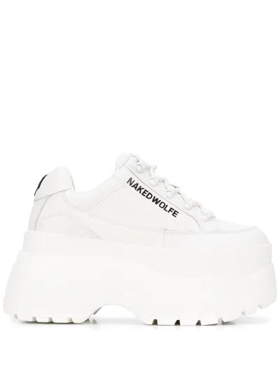 Ridged Sole Platform Sneakers In White