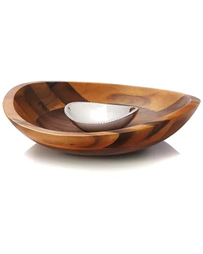 Skye Dinnerware Collection By Robin Levien Wood Centerpiece Bowl In Brown