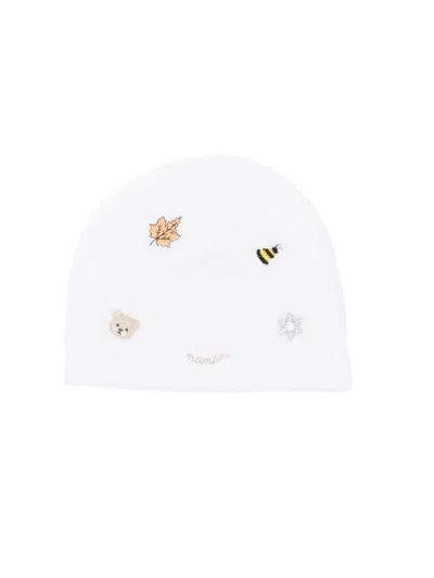 Embroidered Beanie Hat In White