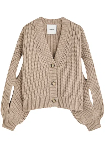 Karolin Ribbed Wool-blend Cardigan In Ecru