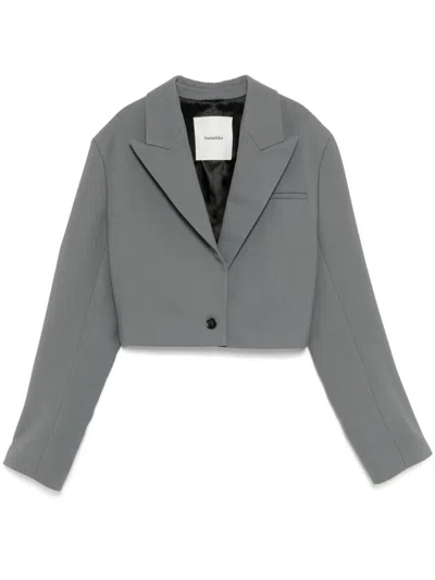 Cropped Boxy Fit Blazer In Grey