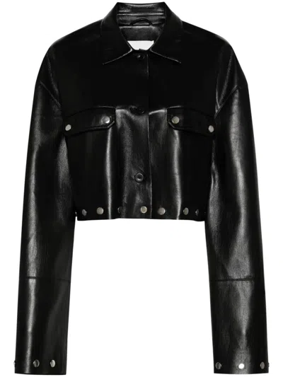 Bogna Long-sleeve Alt-leather Shirt In Black