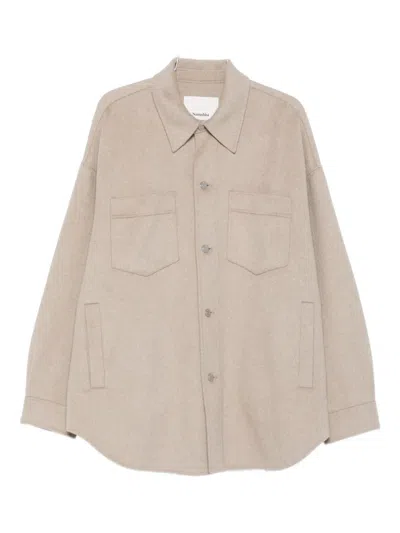 Solid Color Fabian Overshirt With Double Breast Pocket In Beige