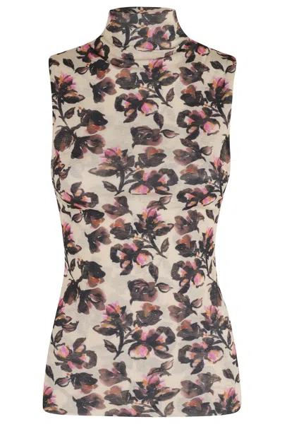 Form-fitting Floral Print Top With High Neck In Multi