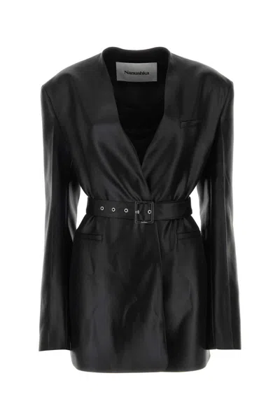 Versatile V-neck Leather Blazer In Black