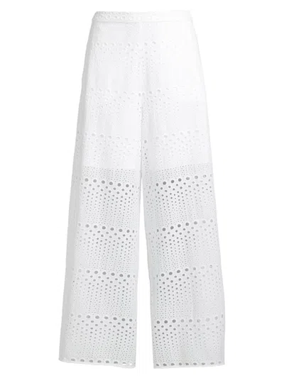 Wide-leg Eyelet-embroidered Cotton Pants In White