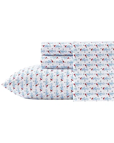 Holiday Seahorse Flannel Sheet Set In Pastel Blue