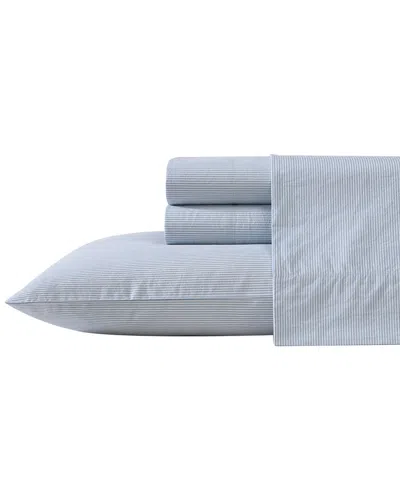 Penny Pinstripe 200 Thread Count Cotton Percale Sheet Set In Blue