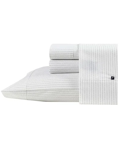200 Thread Count Brenton Stripe Cotton Percale Sheet Set In White