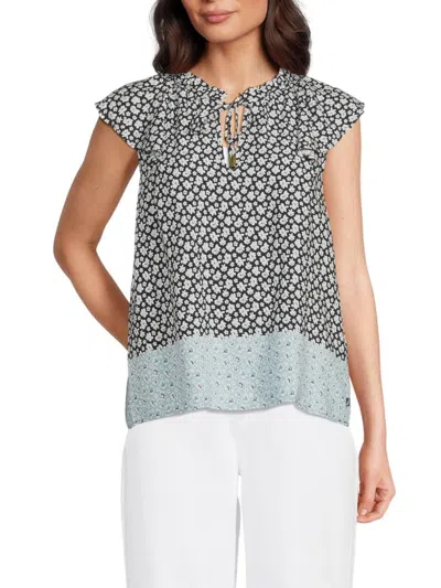 Women's Crinkled Camp Pocket V-neck Blouse In Black