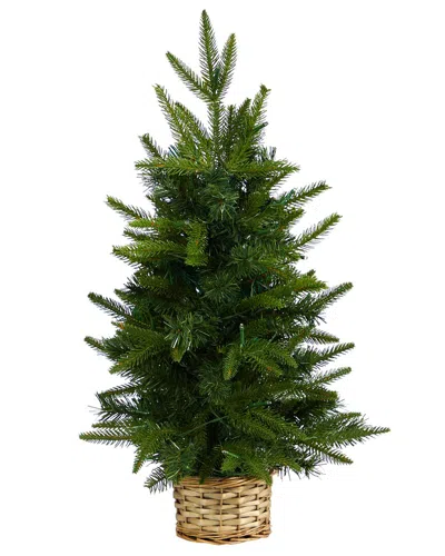 2ft. Artificial Christmas Tree With 35 Clear Led Lights In Decorative Basket In Green