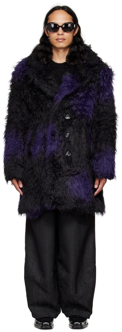 Pea Coat - Acrylic Fur / Blurred Dot In 黑色