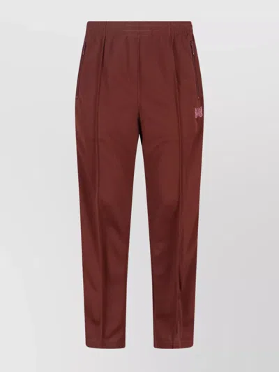 Elastic Waistband Embroidered Detail Side Pockets Trousers In Brown