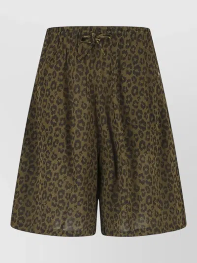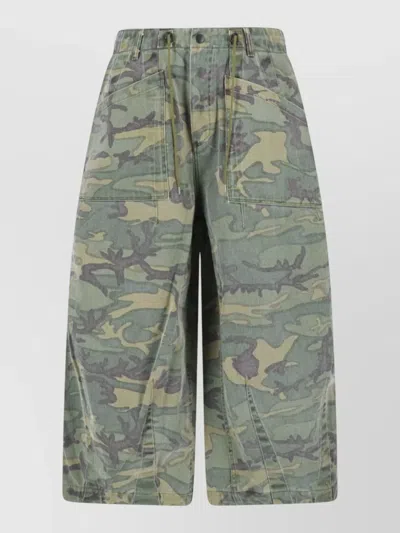 Wide Leg Camouflage Shorts Multiple Pockets In Green