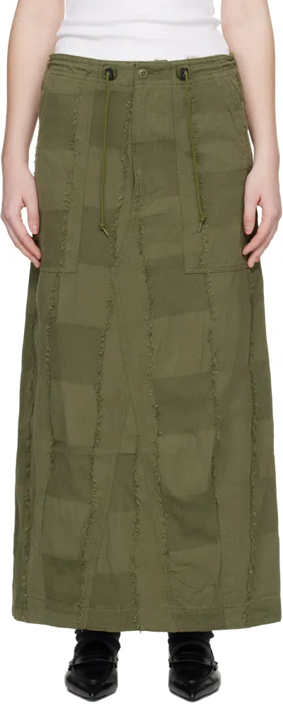 Khaki String Fatigue Midi Skirt In Multi