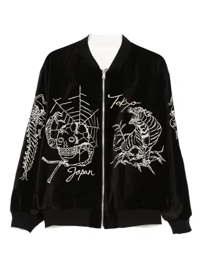 Souvenir Reversible Embroidered Cotton-velvet And Satin Bomber Jacket In Black