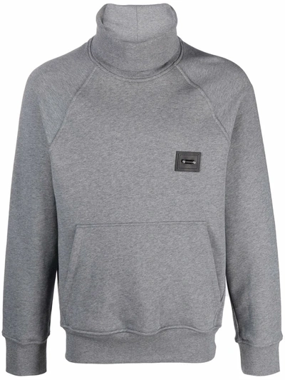 Short-sleeve Grey T-shirt With Lightning Bolt Motif In Gray