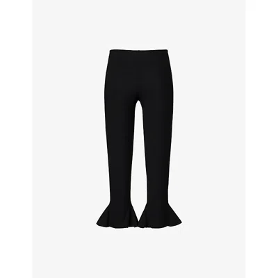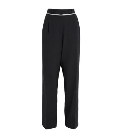 Ribbed Waistband Flared Pant With Cut-out Lacing In Black