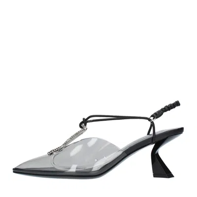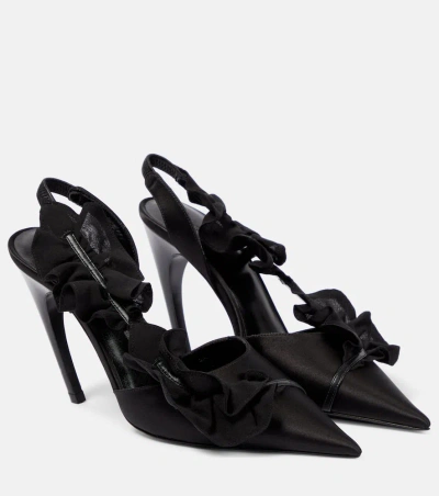 Ruffled Satin Slingback Pumps With Unique Heel In Black