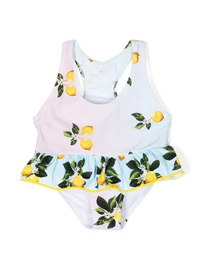 荷叶边饰连体泳衣