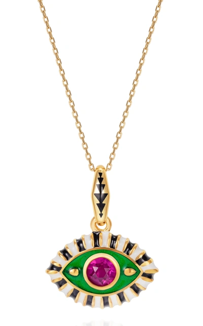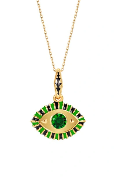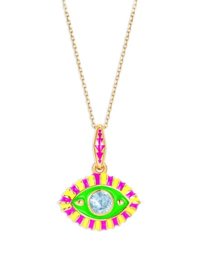 Women's Life In Colour 14k Yellow Gold Enameled Topaz Eye Necklace In Green