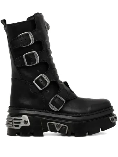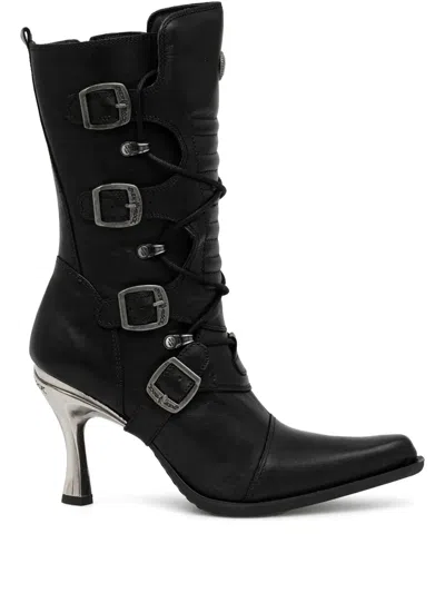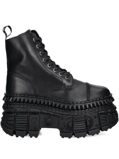 M-m-overz106b-c1 Metallic Chunky Black Leather Gothic Ankle Boots