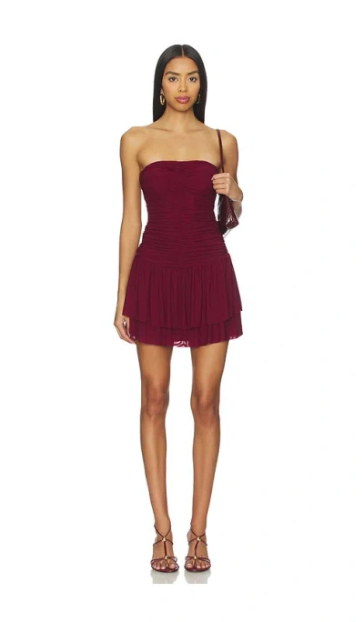 Nola Shirred Strapless Mesh Maxi Dress In Brown