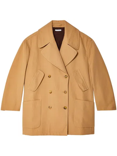 Double-breasted Virgin Wool Blazer With Peak Lapel In Gold