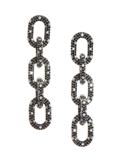Women's Link White Rhodium-vermeil & Crystals Drop Earrings In Black
