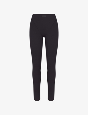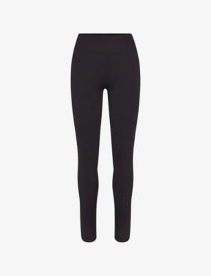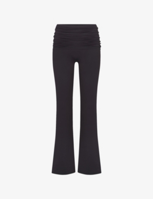 Womens Obsidian Matte Fold-over Slim Flare Leggings In Black