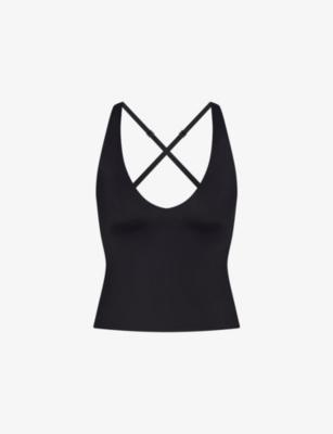 Womens Obsidian Matte Square-neck Jersey Tank Top Xxs In Black