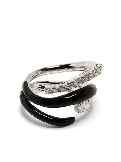 18K白金钻石珐琅戒指