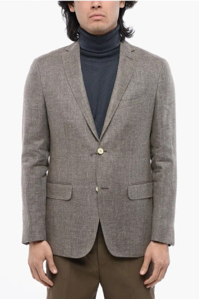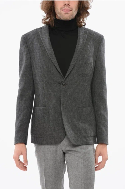 Single-breasted Herringbone Wool Blend Blazer In Gray