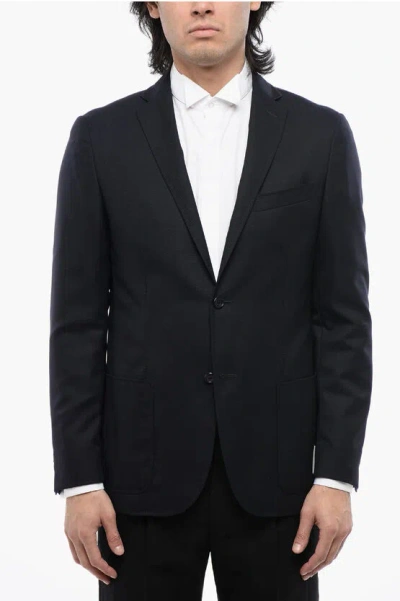 Virgin Wool Blend Side Vents Notch Lapel Blazer In Blue