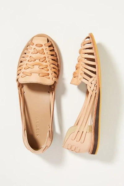 Woven Leather Sandals In Beige