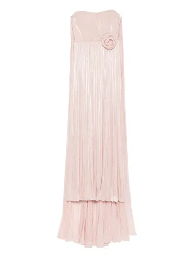 花卉缀饰蕾丝超长连衣裙