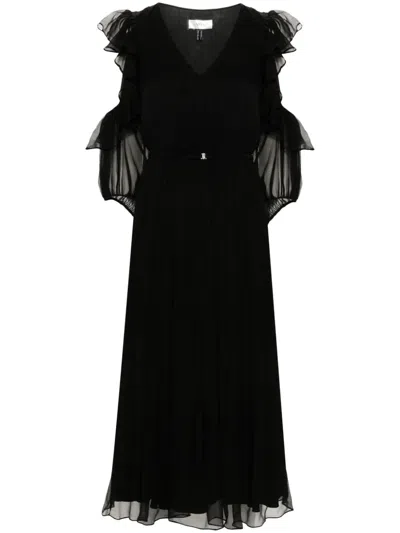 荷叶边真丝中长连衣裙