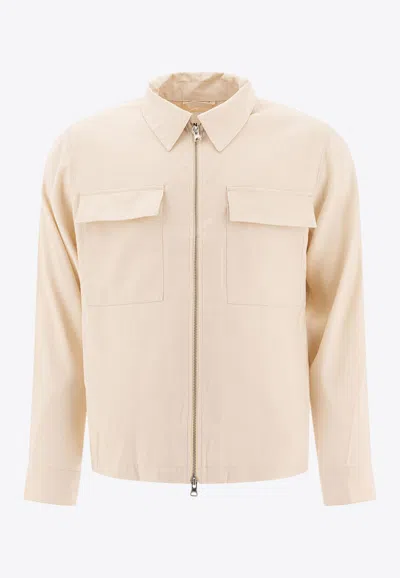 Casual Jacket With Collared Design And Pockets In Neutral