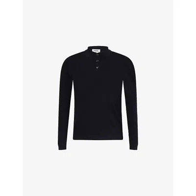 Mens Navy Tristan Open-weave Knitted Polo Shirt In Black