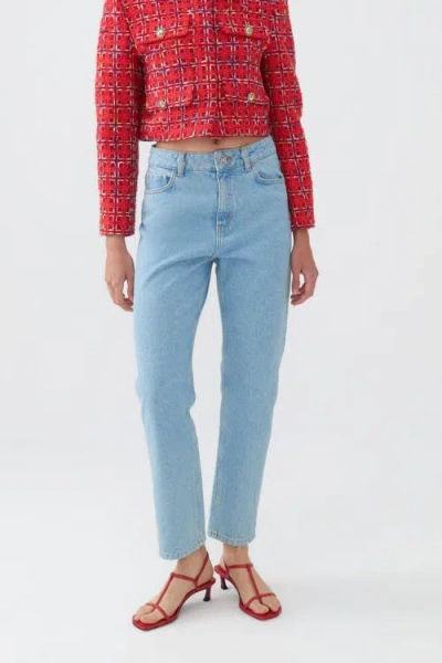 Stone Embroidered Mom Fit Jeans In Gold Black