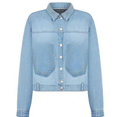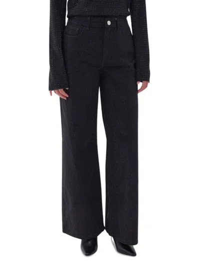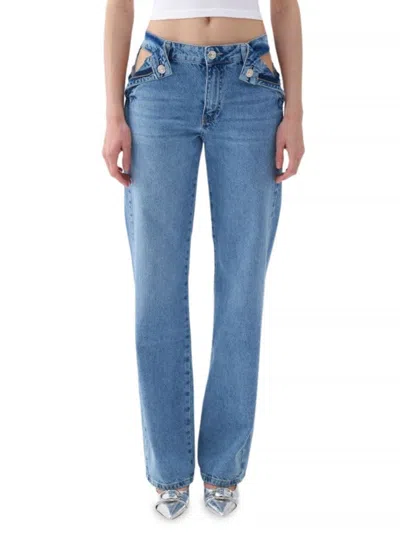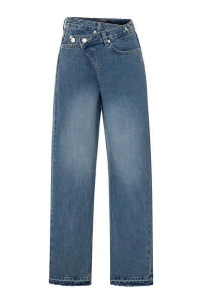 Women's Faded Asymmetric Button Waist Jeans In Navy