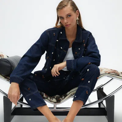 Seashell Designed Jean Jacket In Navy