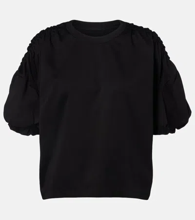 Wool Jersey And Tulle Long Sleeve T-shirt In Black