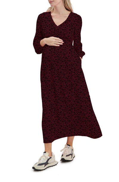 Curve Long Sleeve Maternity Maxi Dress In Merlot In Red