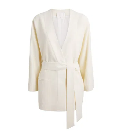 Wool-silk-linen-blend Tan Jacket In White