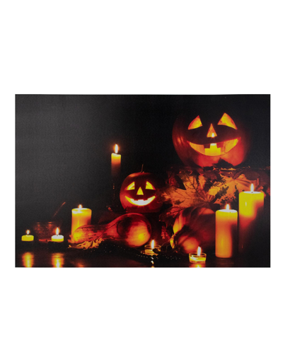Led Lighted Jack-o-lanterns And Leaves Halloween Canvas Wall Art, 15.75" X 23.5" In Yellow