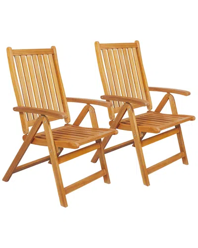 Set Of 2 Acacia Wood Folding Outdoor Patio Chairs In Blue