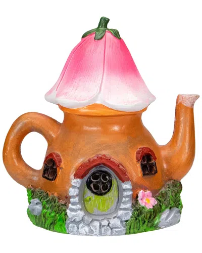 7in Solar Lighted Flower Teapot Outdoor Garden Statue