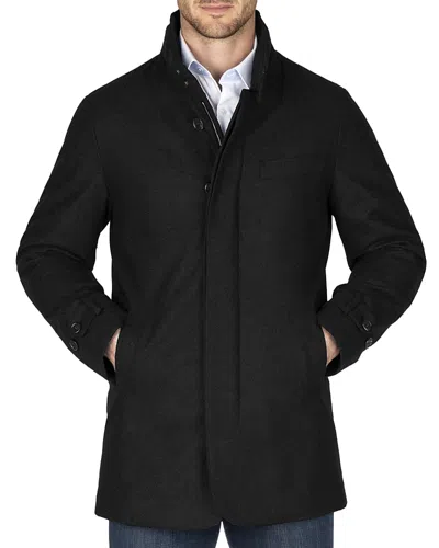 Stretch Wool Hooded Euro Coat In Black