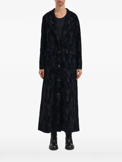 Buttoned Long-sleeve Coat In Black